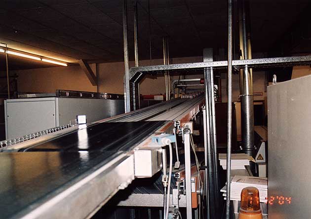 nächsten Maschine transportiert.
